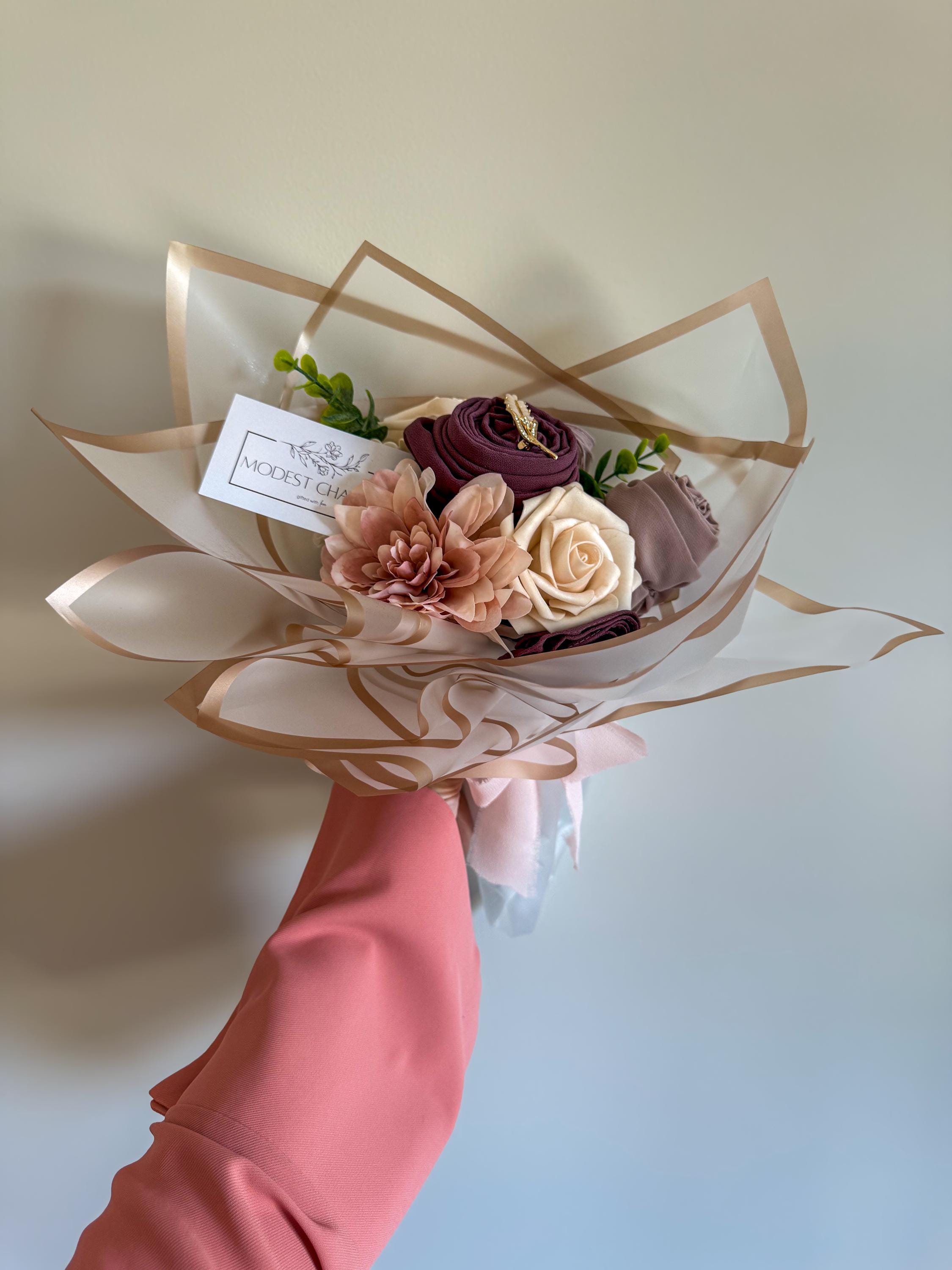Each of our curated gift boxes/bouquets is handpicked with care and attention to detail. Contents may vary in items and colors. Embrace the magic of anticipation and cherish the one-of-a-kind experience of receiving a Modest Charms gift box! 🎁✨